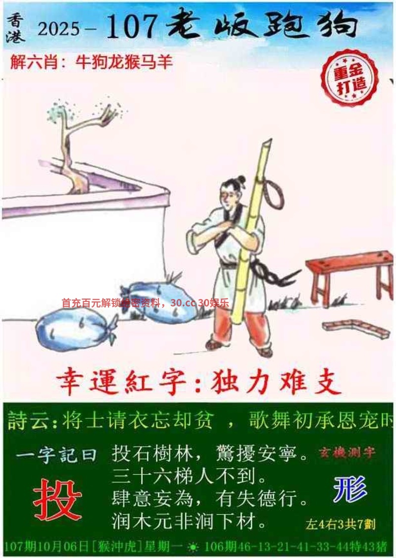 101期:今期牛马狗看定,特碼旺大合单出开蛇25准